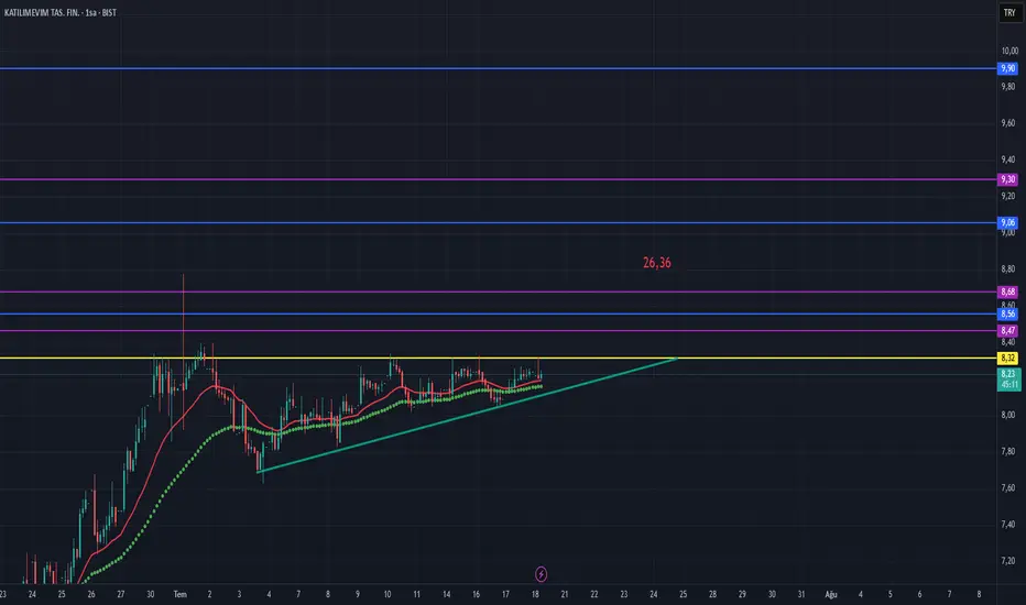 Formasyon şartı olarak sarı çizgi üzeri kapanışlar arayalım.Hedefler fibonacciye göre çizilmiştir.