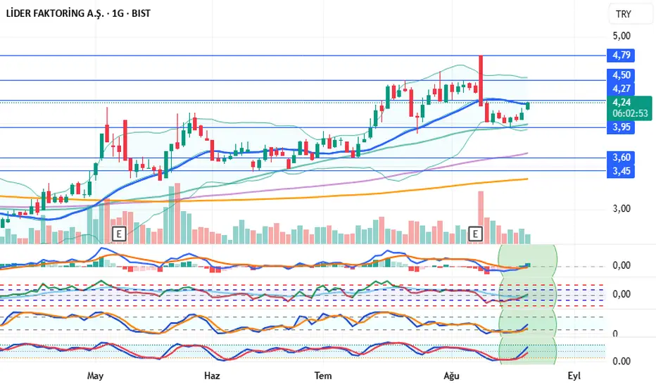 Günlük teknik indikatörler Pozitif. Hisse 21 günlük fiyat ortalamasını (4,22) yukarı kırmaya çalışıyor. Biraz yukarısı da 4,27 direnç seviyesi yukarı kırabilir ise 4,50 direnç seviyeleri test edilebilir. İndikatörlerinde alt konumdan pozitife yönelmesi hisse için olumlu bir durum. Haftaya iyi bir seviyede kapatma ihtimali olabilir tabi destek devam eder ise.