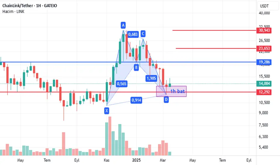 LINK ten yine haftalık olarak boğa harmonik bat görünümü mevcut. 12,54$ dan tekrar bir alım yaptım maliyetim 8$ oldu. Hedeflerim sırası ile 19,28 - 23,65 - 30,94 . İçimden geçen ise 30