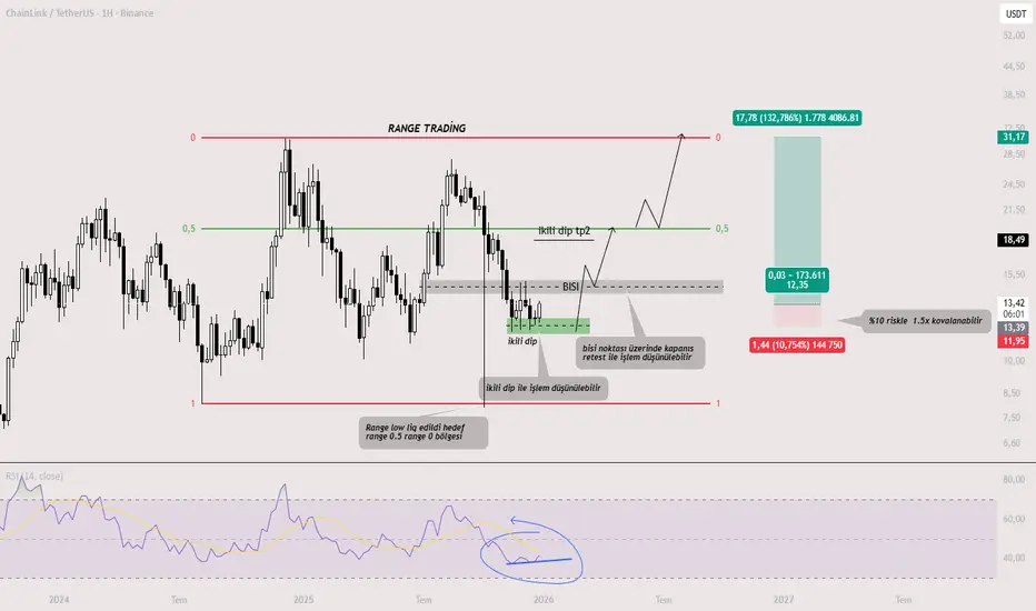 Fiyat range içerisin'de hareket ediyor Range low noktası liq edilmiş hedef noktası range orta bandı ve range high noktası olacaktır..