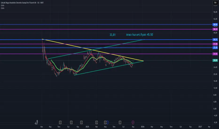 9 Aylık bilanço geldi eder fiyat 33.81.Aracı kurumların ort.hedef fiyatı 45.50.Teknik anlamda Sarı düşen çizgi üzeri kapanışlar görebilirsek hedefler fibonacciye göre belirlenmiştir.Başka bir bakış açısıyla 22 ema nın 50 ema yı yukarı yönlü kesmesini bekleyebiliriz.