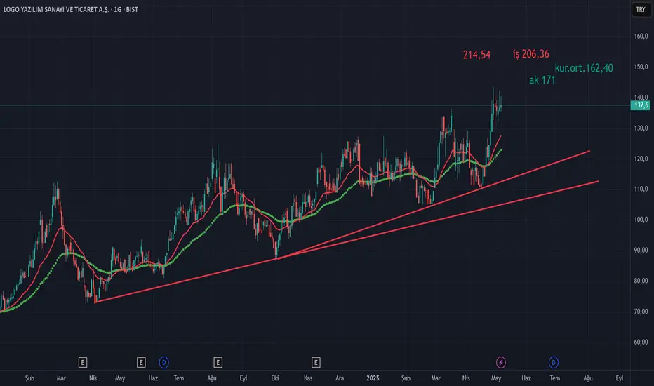 3 Aylık bilanço geldi değerlemesi yapıldığında eder fiyat 214.54 tl.Teknik anlam da fiyatlar 22 üssel ort. 50 üssel ort.üzerinde old.sürece yön yukarı.Kullandığımız hareketli ort.iz süren kabul edebiliriz.