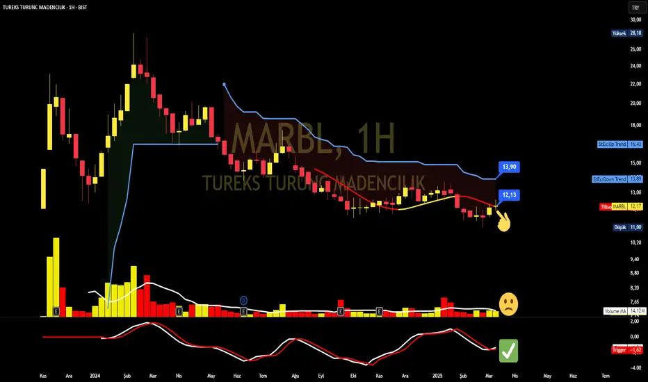Haftalık grafikte istediğimiz koşullardan bitanesi olan hacim henüz yeterli değil.Hacim destekler ise kısa hedefi 13,90 test edilir.