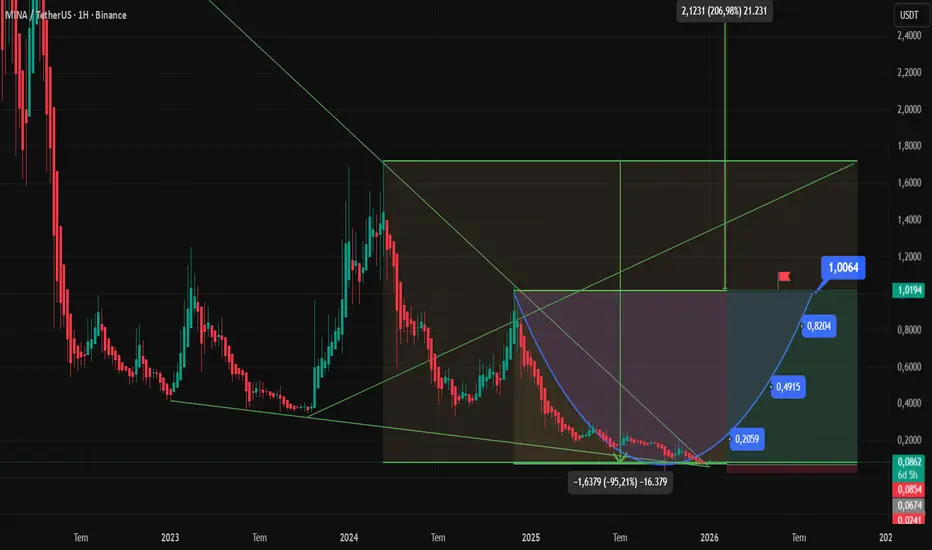 Mina Protocol (MINA), kripto dünyasında "Dünyanın en hafif blok zinciri" olarak tanınan, devrimsel bir Katman-1 projesidir. Diğer blok zincirleri yüzlerce gigabayt büyüklüğe ulaşıp hantallaşırken, Mina teknik mimarisi sayesinde her zaman sabit bir boyutta kalır. An itibari ile fiyatı 0,0850$ gerçekleşen işlem hacmi 18M$ teknik olarak incelediğimizde düzeltmenin bittiğini söyleye biliriz kademeli alımlar obv para girişi ve haftalık trend yönü pozitif görünüyor. Kısa da sert yükselişler ve yeni fiyat adımları gelebilir.
