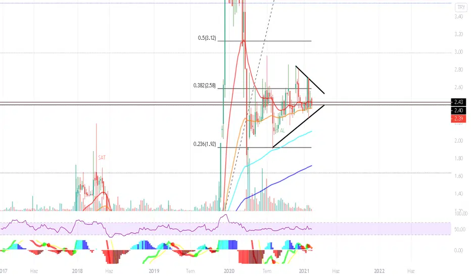 Anlık 2.39 fiyatıyla 200 günük ortalamanın bile altına kırmış durumda tüm stopları patlatmış 2.40 üstü kalıcılık sonrasında 2.43 direnci var üstünde 2.60 takozu kırıp giderse devam takoza değerse stop olmazsa altta 2.30 a kadar sarkabilir ordan artık tepki beklenir yoksa 1.90 lar var MACD hafif satda RSI nötr günlük bazda , haftalıkta ise gine aynı haftalıkta ayrıca 2.36 stopu var YTD.