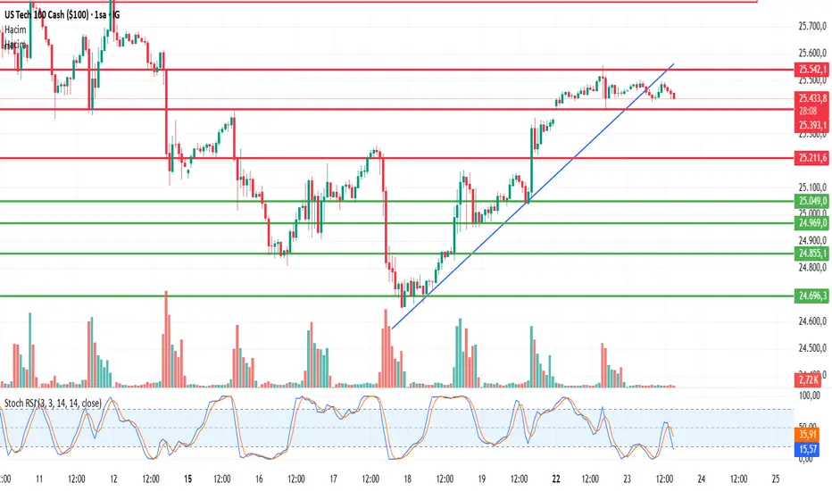 25,542.1 ve 25,436.7: Endeks, bu direnç seviyelerini aşmakta zorlanıyor. Eğer bu seviyeler geçilirse, yükseliş daha da hızlanabilir.