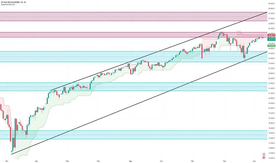 nasdaq günlük grafikte 24500 yükselen trend altı kapanışlar gelmediği sürece alım tarafı güçlü kalıcaktır.