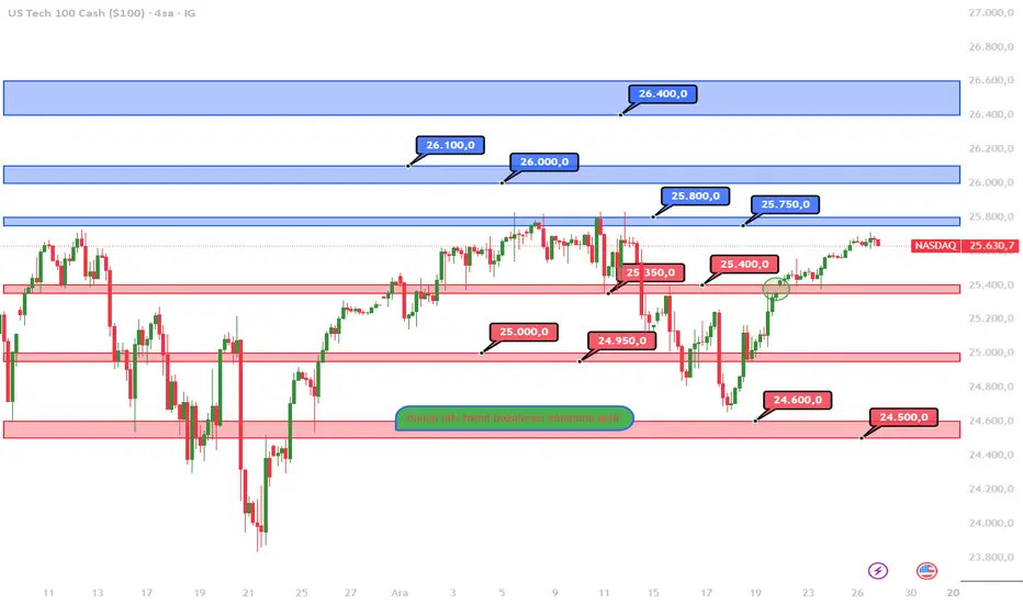 25400 25350 kısa vadeli en güçlü desteğimiz ; son yükselişin geri çekilme alanı
