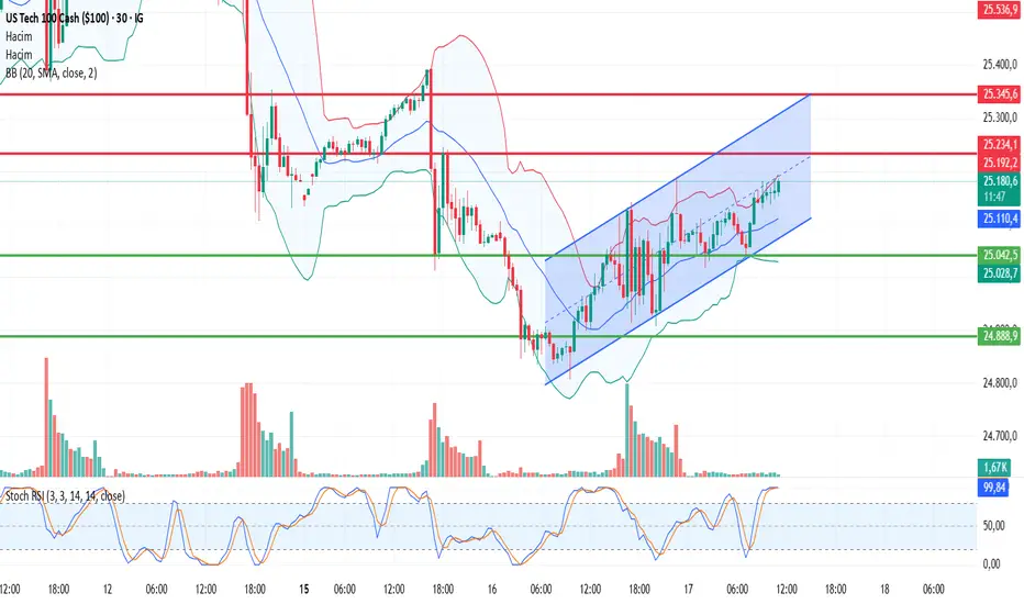 Destek Seviyeleri: 25,042.5 ve 25,030.5 destek seviyeleri olarak dikkat çekiyor. Bu seviyelerin altına inilmesi, aşağı yönlü baskıyı artırabilir ve fiyatın 24,888.9 seviyelerine doğru geri çekilmesini tetikleyebilir.