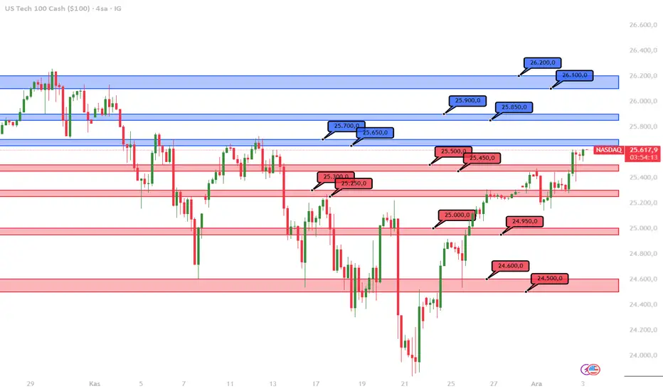 26100 26200 önceki trend zirveleri bu seviyelerin üzerinde kapanışlar trendin net şekilde yukarı döndüğünü teyit eder!!