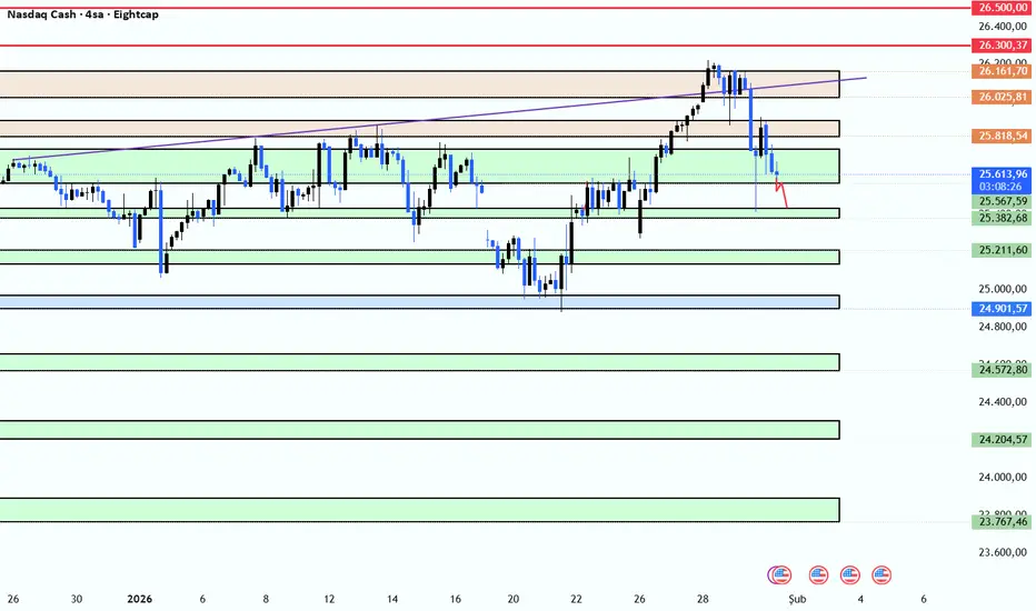 📉 Öte yandan fiyat 25.382,68 destek seviyesinin altında bir kapanış gerçekleştirirse, satış baskısının artmasıyla birlikte sırasıyla 25.211,60 – 24.901,57 - 24.572,80 destek seviyelerine doğru geri çekilme yaşanabilir. 🔻
