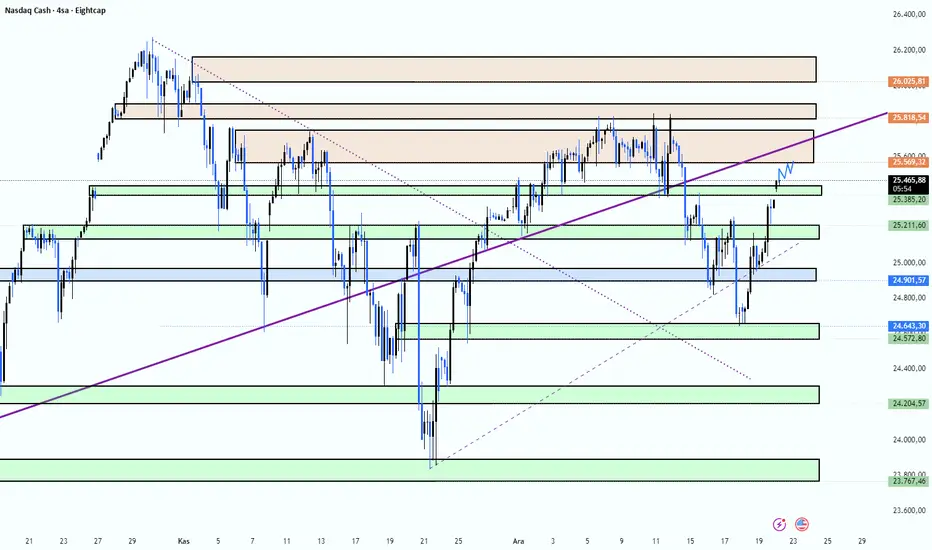 🕹️ Genel görünümde fiyat hareketi pozitif seyrini koruyor. Bu nedenle 25.385,20 destek bölgesindeki fiyat tepkisi, kısa vadeli yön tayini açısından kritik önem taşıyor.