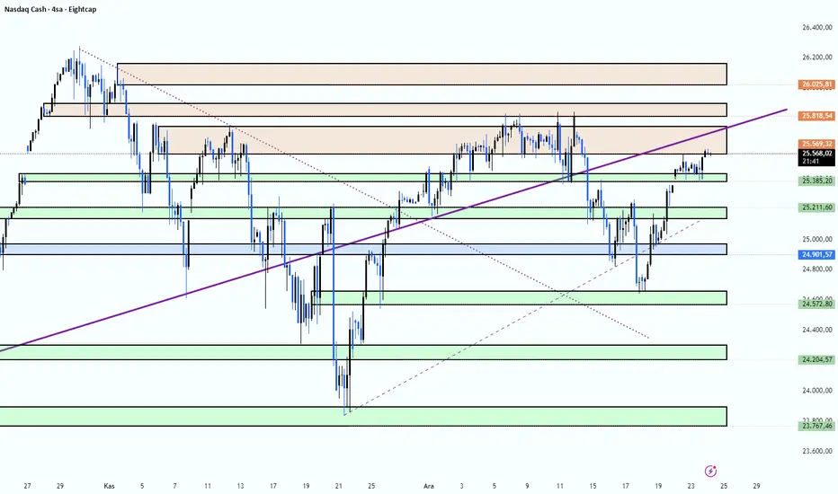 🕹️ Genel görünümde fiyat hareketi pozitif seyrini koruyor. Bu nedenle 25.569,32 direnç bölgesindeki fiyat tepkisi, kısa vadeli yön tayini açısından kritik önem taşıyor.
