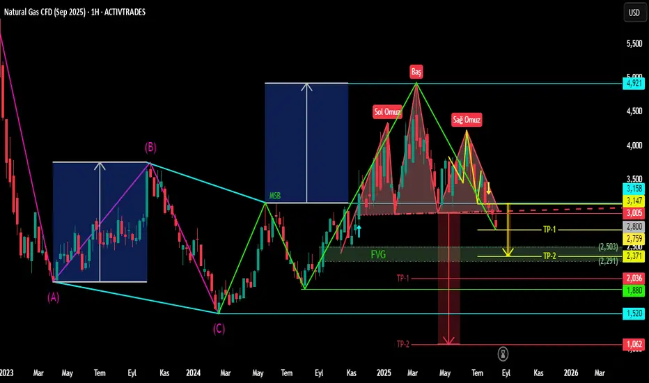 Diğer yandan, grafikte kırmızı renk ile belirttiğim bir OBO formasyonu mevcut ve boyun çizgisi geçen haftaki mum kapanışıyla aşağı yönlü kırılmış durumda...Bir önceki analizimdeki dalga yapısında bahsettiğim koşullara göre, bu OBO formasyonu ANA hedefine ulaşabilir mi, pek emin değilim ama TP-1 hedefine ulaşabilme ihtimali vardır.