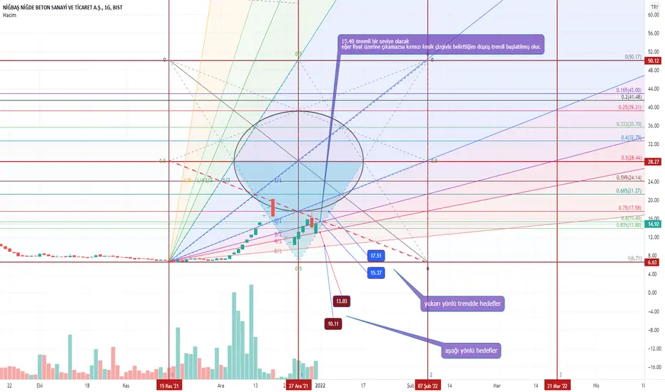 p.tesi günü 4/1 fan çizgisinin altına yani 13 tl altına düşmediği sürece yükseliş trendinde yukarları hedefleyebilirim. 15.40 üzerinde 1 gün kalabilirse ilk hedefim 17.50 olacak speak hisse olduğu için nereden satış yer nereden döner kestirmek zor ama 2022 ilk haftasında 13 tl altına inmemeli. normalde 3/1 ---- 4/1 fan kanalı içinde hareket yukarı yönlü beklenir. fakat volatilitesi yüksek olduğu için eğer yükseliş olursa 3/1 fann çizgisinin üzerine atmaya çalışacağını düşünüyorum. özetlersek 15.40 üzerinde kalıcılık sağlarsa 17.5 direncini kırdıktan sonra yeni hedefler için fikrimi güncellerim. aşağı yönlüyse 13 tl altında seans kapattığında fiyatın gitmek isteyeceği yer 8/1 çizgisi yani 10tl'dir.