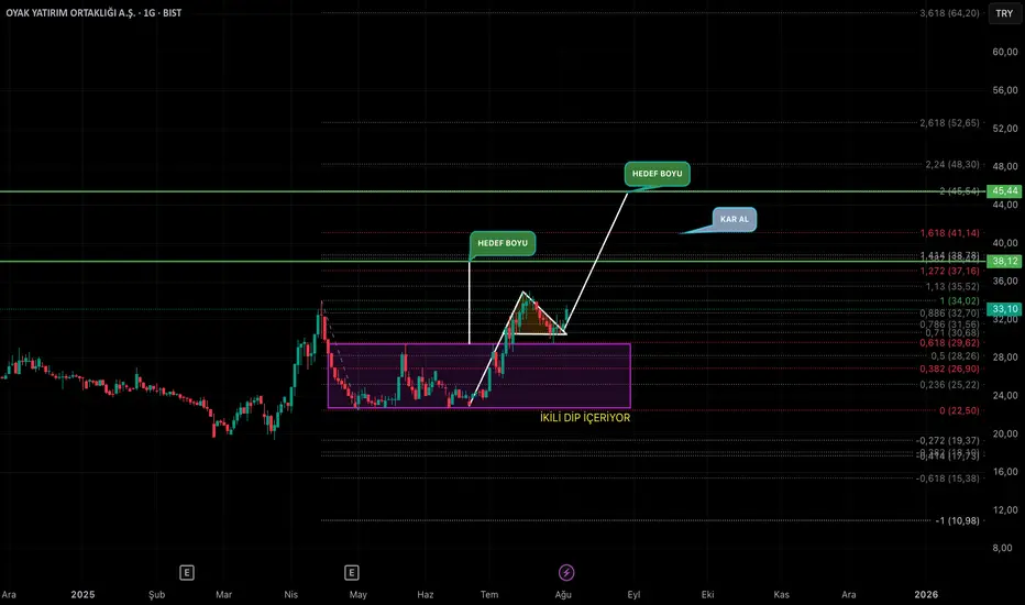 Günlük grafikte İKİLİ DİP ve FLAMA ÜÇGEN formasyonu bulunduran hissede SAFAKHOMETECHNICAL fibo çizgileri destek direnç olarak takip edilebilir. YTD..