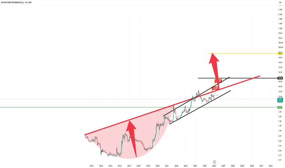 Uzun süredir takip ettiğim bir hisse 2 hafta lık grafiklerden herşey çok net belli oluyor önce 14 TL ler akabinde 25 TL lerin geçilmesi akabinde uzun vade hedefi 150 TL gayet tatmin edici burda anlatılanlar şahsi fikrim olup kesinlikle yatırım tavsiyesi değildir.