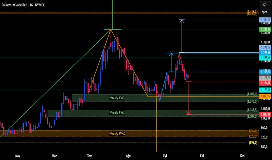 Diğer yandan, grafikte yeşil ile görülen dalga yapısı haftalık zaman diliminde yukarı yönlü market kırılımı oluşturmuştur. Kırmızı ile görülen düşüş formasyonu aktifleşirse, formasyonun hedefi, bahse konu son haftalık dalga yapısının %707 seviyesine denk gelmesi nedeniyle bir OTE seviyesi olan bu seviyeden yeni bir yükseliş dalgası yaşanma ihtimali doğacaktır. Yani, olası fiyatın 1017 seviyesine düşmesi güzel bir ALIŞ fırsatı olarak değerlendirilebilir.