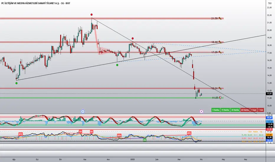 PCILT düzeltmesi bitmiş olabilir. Rsi aşırı satım noktasında. 11 tl stopla takip edilebilir