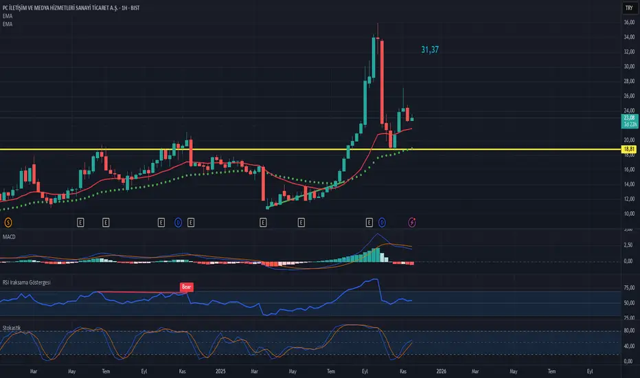 9 Aylık bilanço geldi eder fiyat 31,37.Teknik anlam da ilk destek noktamız 22 ema ikinci destek noktamız 50 ema.Kullandığımız hareketli ort.izsüren kabul edebiliriz.