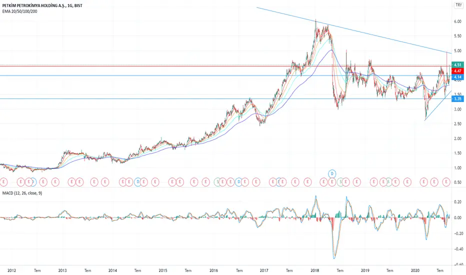 kırmızı çizgi destek haline gelir ise yukarıdan gelen düşüş trendinin üzeri hedeflenebilir. petro-kimya hisseleri son zamanlarda fazla risk içerdiği için dikkatli olmakta fayda var.