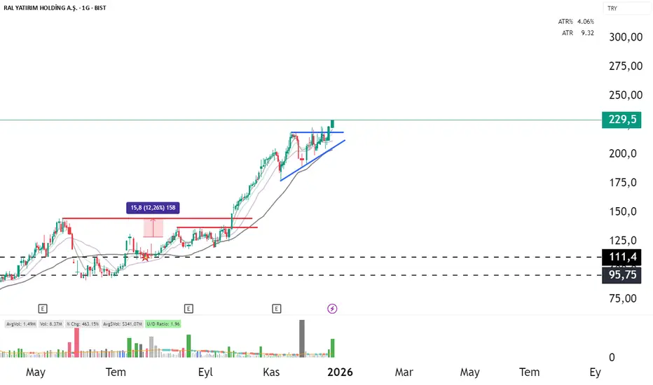 Ralyh daha önce analizini yaptığım güzel kazançlar elde ettiğim bir hisse şimdide yükselen üçgeni kırmı görünüyor. Görselde sade ve temiz bir şekilde formasyonu çizmeye çalıştım. Halen daha Düşük riskli giriş seviyesinde görünüyor.