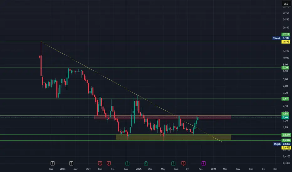 Grafiğimiz haftalık olup, 1.55 dolar civarı önemli bir direnç olarak önümüzde duruyor, düşeni kıran bir pozisyona da geldi şirketimiz, direnç aşılamaz ise tekrar satış baskısı ile 0,82'lere gelebilir, 1,55 kırılırsa 2,67 yolu açılıyor, ondan sonra da 7,30 ve en son 16,93 e kadar ama bu o kadar kolay olmayacak. Şirket, teknoloji ve veri odaklı sigorta çözümleriyle klasik sigorta süreçlerini dönüştürmeye çalışıyor; bu alan halen güçlü büyüme potansiyeli taşıyan bir niştir. Zararı azaltma eğilimi, mali yapı düzeltme hamleleri, borç uzatmaları ve sermaye artırımları şirketin “hayatta kalma / toparlanma” potansiyelini gösteriyor. Hindistan gibi büyük gelişmekte olan pazarlarda faaliyet göstermek ve orada büyüme stratejisi izlemek uzun vadeli fırsatlar yaratabilir. Teknolojik gelişmeler (örneğin AI agent platformları, sürücü destek sistemleri) şirketin teknolojik pozisyonunu güçlendirebilir. Ama her zaman olduğu gibi YTD olarak son 2 yılda düşüş göstermiş ama yaptığı çalışmalar ile yukarılara çıkmak için çaba gösteren bir şirket var önümüzde. Sigortacılık sektörü sıkıntılı bir sektör ama bunu AI platformları ile destekleyip ileriye götürme çabaları onu diğer şirketlerden ayırıyor. Kendi risk analizinize göre orta ve uzun vadeli düşünülebilecek bir Şirket olarak önümüzde. Takibinize almanızda fayda var.