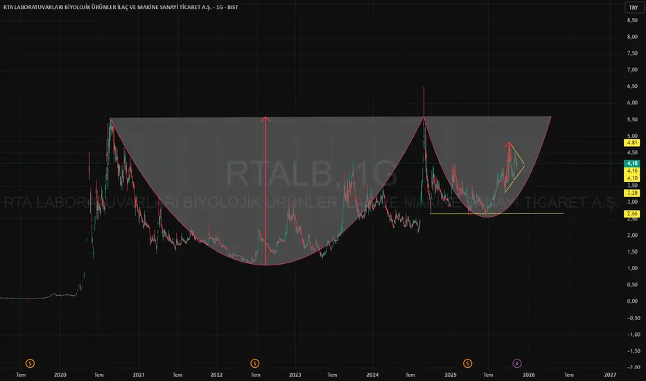 Grafikte çok uzun vadeli (yaklaşık 5 yıllık) belirgin bir "Çanak ve Kulp" (Cup and Handle) formasyonuna benzer bir yapı gözlemlenmektedir.