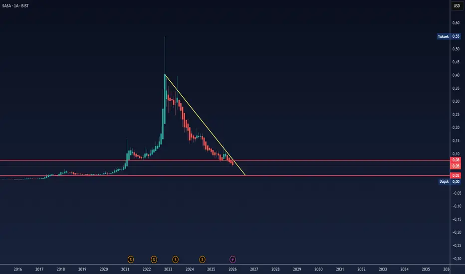 Dolar bazlı grafikte uzun vadeli düşüş trendi korunmaktadır. Mevcut yapı içerisinde henüz trend kırılımı görülmemekte olup, aşağı yönlü hareketin devam etmesi halinde 0.020 cent bölgesi teknik olarak olası destek alanı olarak takip edilmektedir.