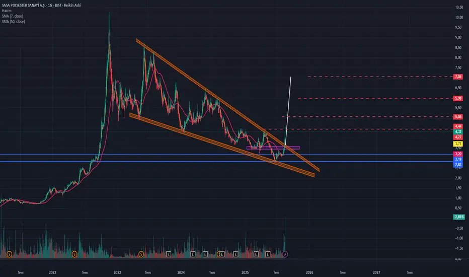 Fiyatın, bu kama formasyonunun üst çizgisini (yaklaşık 3.71 TL seviyesi) yüksek işlem hacmi ile kırması durumunda, formasyon hedefi genellikle kamanın genişliği kadar ölçülür. Bu da fiyatı 7.00 TL civarına kadar taşıyabilecek bir potansiyel yükseliş hareketine işaret eder.