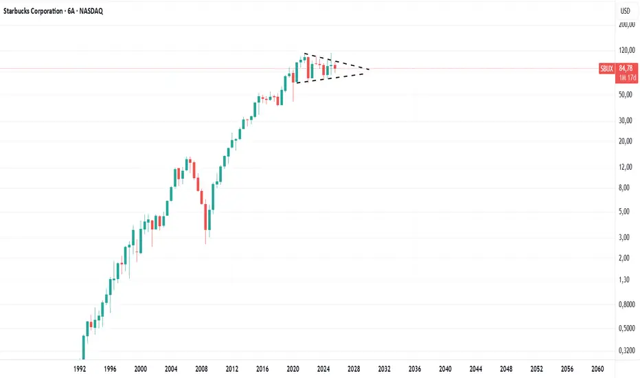 SBUX 6 Aylık daralan bir üçgen mevcut 98 üstü hareket hızlanabilir