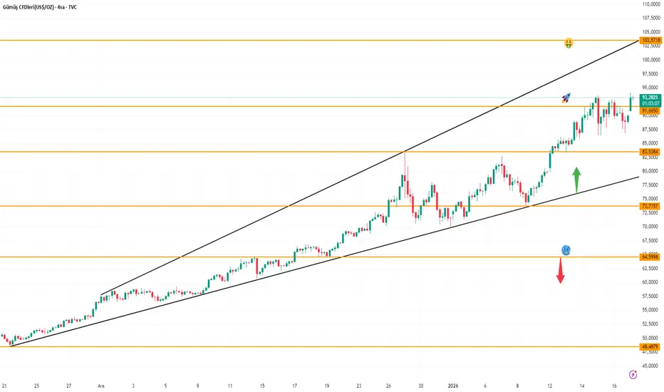 gümüş grafiğinde halen yükselen devam ediyor ve hedefleri tek tek geliyor yönü pozitif devam