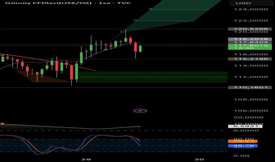 #SILVER 118.20 kısa vadede zorlanan seviye.
