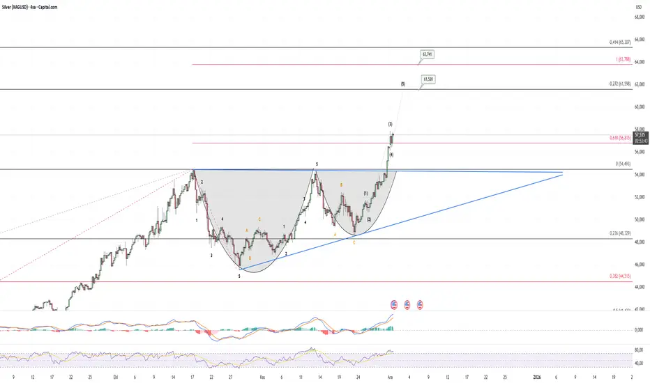 Yukarı yönlü iki farklı yapı kırılımı karşımıza çıkıyor . Simetrik üçgen ve Fincan. Alt zamanda düzeltmeleri normal karşılamakla birlikte üst zaman buy yönlü beklentim devam ediyor. Hedefler 61.500 sonrasında üçgen hedefi olan 63.740 .. Bol kazançlar dilerim herkese..
