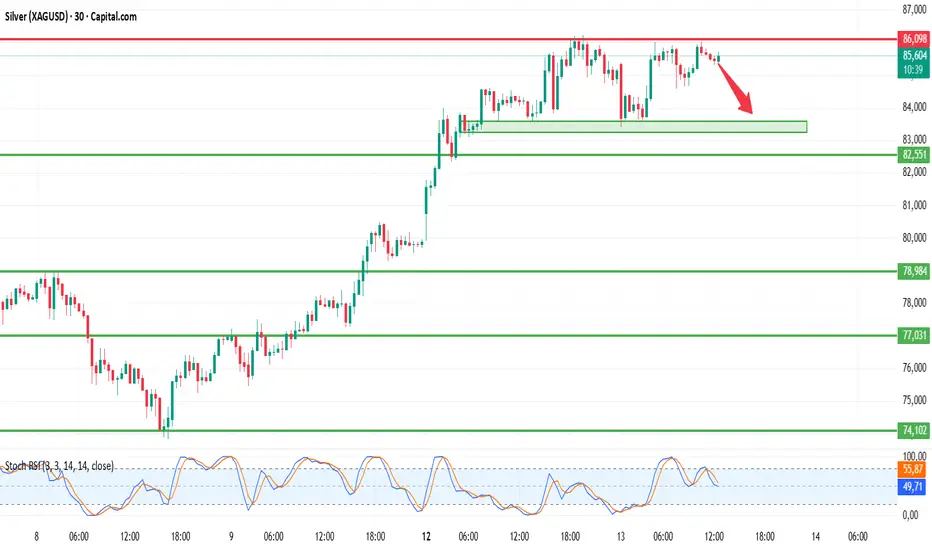 Silver (XAGUSD) – Yükseliş Sonrası Yatay Hareket ve Düşüş Beklentisi 📉
