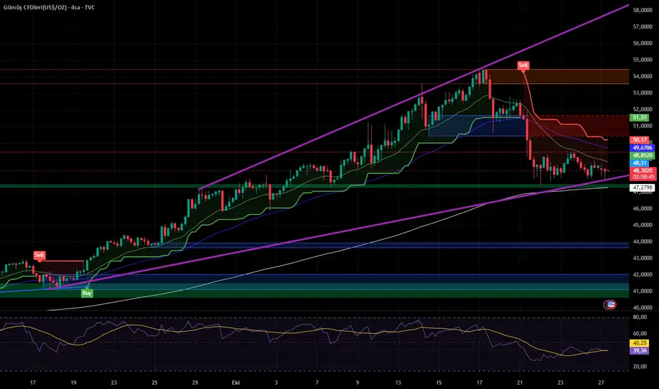 Silver 4 saatlik grafikte 54.500 üzerinde 4 saatlik kapanış gelmediği sürece alt bölge kanalımız olan 47.450 seviyelerini tekrardan test edebilir.
