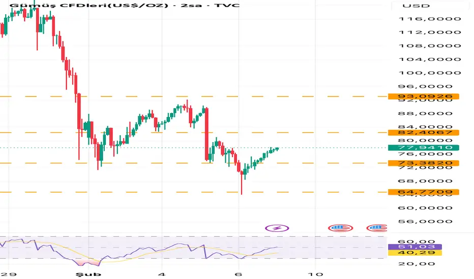 Gümüş şu an düşüş sonrası toparlanma fazında. Destekler üzerinde kalıcılık sağlanırsa dirençlere doğru kademeli bir hareket izleyebiliriz. Ancak volatilite yüksek, risk yönetimi şart.