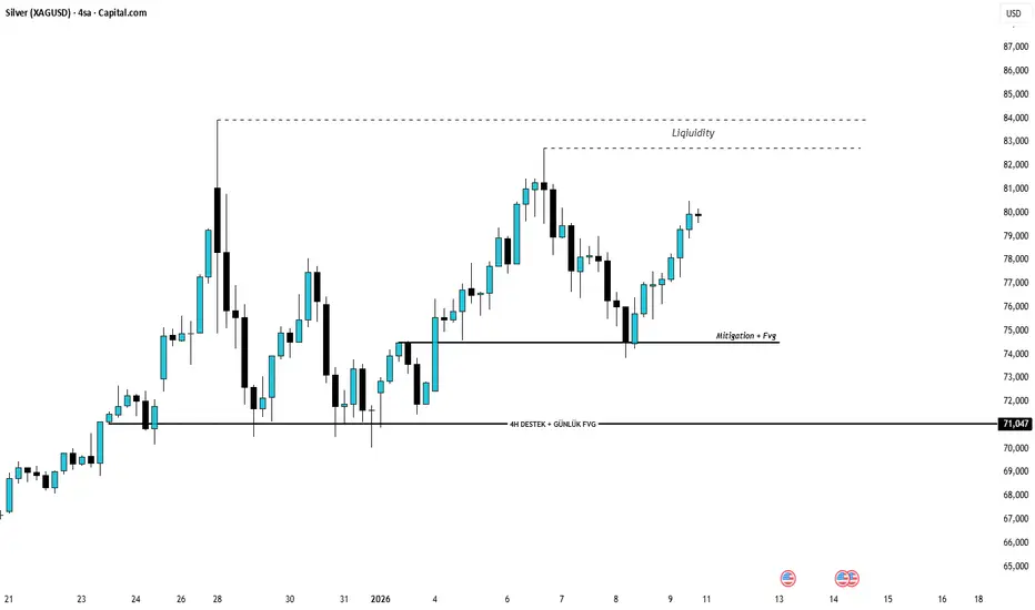 Olası geri çekilmeler, 75 ve 71 seviyelerinde trend içi alım fırsatı sunabilir. Ana hedef ise üst likidite alanı olarak öne çıkıyor.