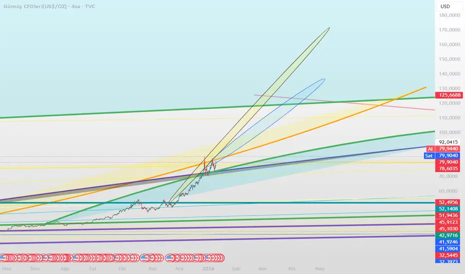 Gümüş 4 saatlikte ana yeşil yay üzerinde ilerliyor. 74 üzeri kaldıkça 92 – 105 – 125 bandı sırasıyla çalışacak yay hedefleri olarak öne çıkıyor.