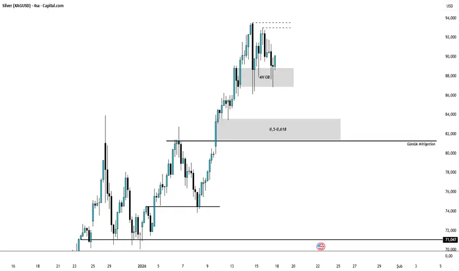 Gümüş, güçlü yükseliş impulsu sonrası sağlıklı bir düzeltme/konsolidasyon sürecinde kalmaya devam ediyor. Ana trend yapısı pozitif.