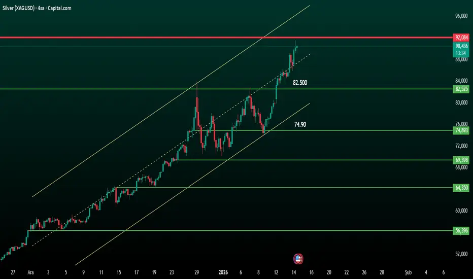 Fiyat, uzun süreli yükseliş trendinin ardından 90,00 seviyesinde yeni zirve yaparak satış baskısına maruz kaldı. Paralel bir kanal oluştu. şu an seviyeleri, 90,00 – 92,00 aralığında yatay hareket ediyor. Fiyatın üzerinde güçlü bir direnç bulunuyor. 92,00 seviyesinde denemeler yapıldı; eğer bu direnç kırılırsa yeni rekor seviyeler görülebilir. Bu seviyenin aşılması durumunda yükselişine devam etmesi beklenebilir. Eğer fiyat, bu seviyeyi kırarak üzerine yeşil mumla kapanış yaparsa, yükseliş trendi yeniden ivme kazanabilir.