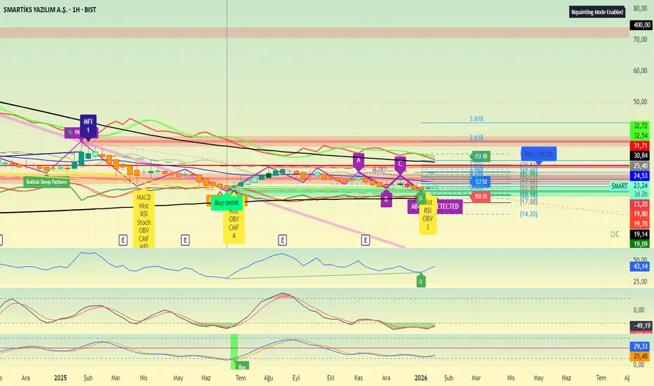 Haftalık grafikte harmonic analizi al seviyesine geldi. mavi çizgili tp seviyelerini tek tek deneyecektir. Pozitif. YTD.