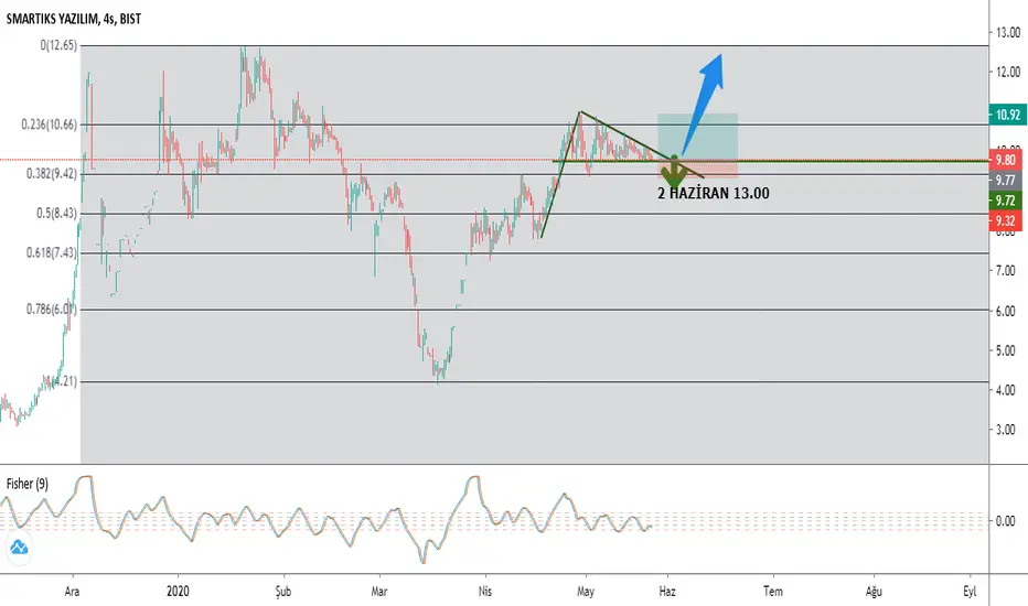 Hissede bir flama ve sıkışma söz konusu. Normal şartlarda sıkışma 2 Hazirana kadar sürebilir ancak üst kanalın kırılmasıyla daha erken de olabilir. İzlemek gerekiyor. Flama çalışırsa hedefi hissenin zirvesi olan 12,6 seviyeleri olacaktır ancak dirençlere takılma sebebiyle daha erken k ar al yapılabilir. Stop noktası ise flamanın çalışmadığı ve bozulduğu durumda uygulanabilir. Aşağıda 9,4 fibo desteğidir. Yukarıda 10,6 ve 11 seviyeleri direnç olarak görünüyor. Şu fiyat itibariyle %10 civarında k ar marjı söz konusudur. Takibimde olan bir hissedir. Ancak geçmişte sert hareketleri olduğundan nispeten riskli bir yapısı olduğunu da söylemek gerekir. Benim takip listemdedir. Ancak kimseye yatırım tavsiyesi vermiyorum. Riskleri ve k ar marjı ihtimallerini kendimce belirttim. Düşünüp tartıp alıp satmak sizlerin kararıdır.