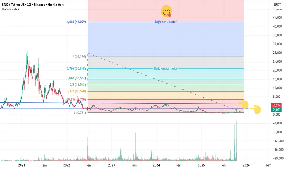 Öncelikle 2,62 lerde ki direnci kırıp kendini üste atması lazım sonrası roket diye düşünüyorum.. 2,62 sonrası ilk hedef 5,30-5,40 dolar seviyeleri.. Boğa ortası hedefi 21 dolar seviyeleri, boğa sonu hedefi 42,43 dolar seviyeleri... Kesinlikle yatırım tavsiyesi değildir. Kendime nottur..