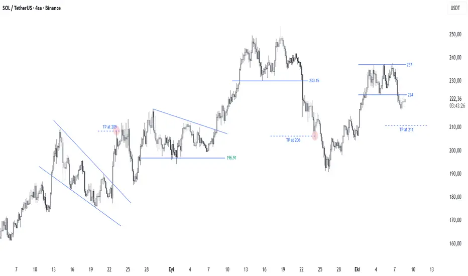 ➡️ Strateji: 224 Dolar altında kısa vadeli short pozisyonlar değerlendirilebilir. 224 dolar uzeri 4 saatlik kapanis stop.