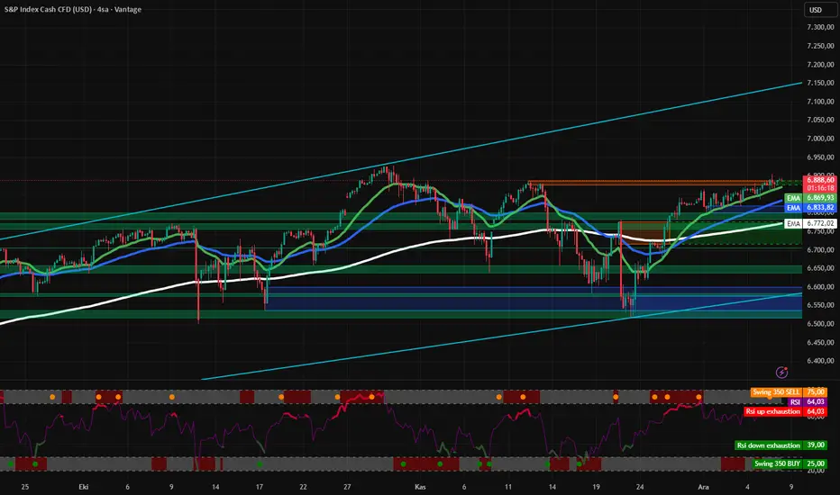 SP500 4 saatlik grafikte 6.920 üzerinde 4 saatlik kapanış gelmediği sürece alt bölge kanalımız olan 6.500 seviyelerini tekrardan test edebilir.
