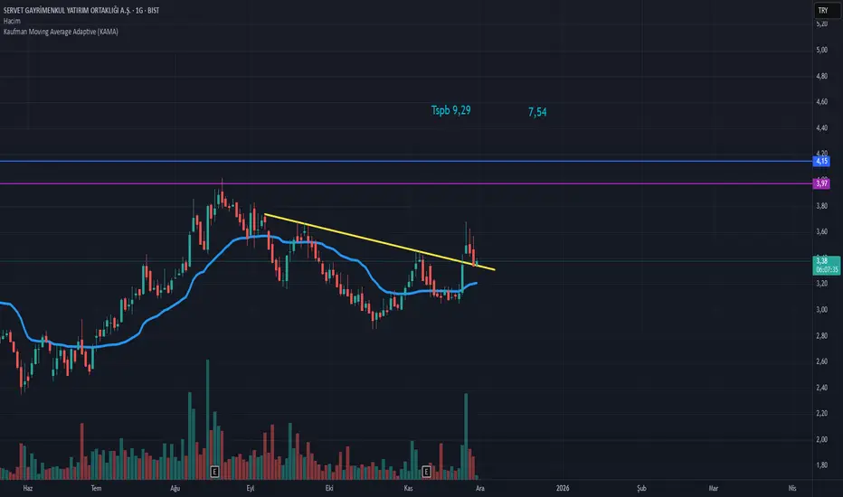 Tobo formasyonu için sarı çizgi üzeri kapanışlar arayalım.İlk hedef çıkışın fibo 1.414 denk gelen 3,97 bahsettiğim seviyenin üzerinde kalınılması durumun da ana hedef 4,15.