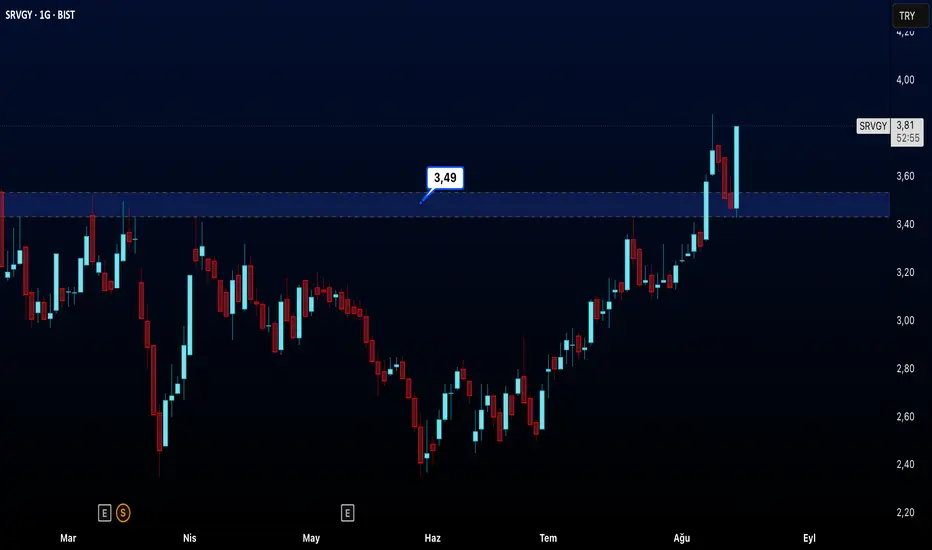 Fiyat akümüle sürecini tamamladıktan sonra hacimli mumla 3,49 üzerine geçiş sağladı.