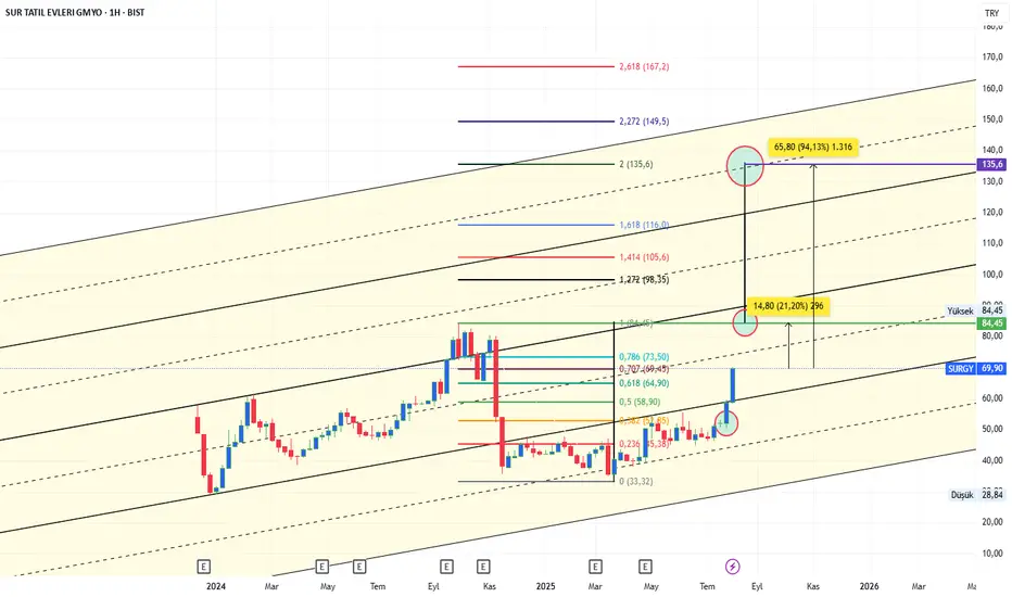 SURGY hissemiz 382 -- 52.85 bölgesini geçmiş durumda şimdiki bölge 786 bölgesi izlenmeli sonra zirve fiyatı 84.45 takip edilmeli geçmesi üzerine, çanak ve çanak katlama olarak hedefleri 135.6 olarak belirttim. takası güzel durumda teknik gösterge ve sinyaller Al konumunda, analiz ve çalışmadan ibarettir. yatırım tavsiyesi içermez.