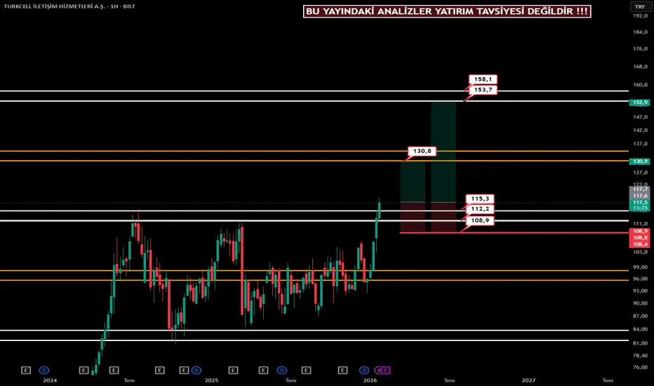 Turkcell kırılım verdi ; haftalık kapanışa 20 dakika var , 115 üstü kapanışlar boğa bayrağı formasyonu tetikler.